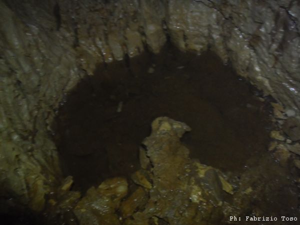 La pozza d’acqua alla base del pozzetto appena sceso.