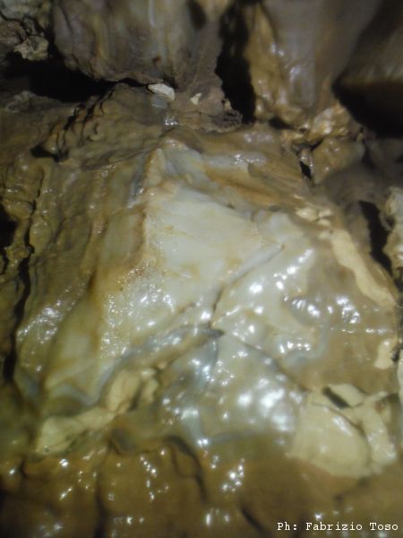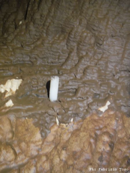 Davanti a me le pareti della grotta si riempiono di nuovo di fango, non e’ un buon segno. Forse la grotta e’ soggetta a piene fino a questo livello?
