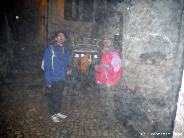 Speravo di salutare i nostri amici “alienici” durante la solita sosta al bar Semprevisa di Carpineto ma loro tirano dritto, la loro grotta chiama. Noi invece abbiamo l’ultimo rendez-vous proprio al bar quindi posteggiamo la macchina alla meno peggio e scendiamo ad incontrare Leandro, che ci ha raggiunto da Subiaco (o dintorni), Vincenzone e Luca, che vivono nei pressi.