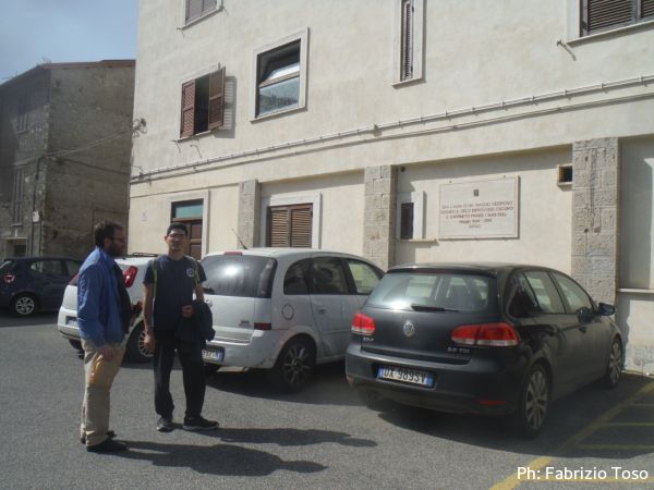 Una volta adeguatamente rifocillati, rimontiamo in macchina per andare alla grotta che abbiamo scelto per oggi, l’Ouso di Salvatore. Arrivati davanti alla strada che porta alla grotta, troviamo il cancello chiuso. Anche questa volta, come la prima di questo inverno, non abbiamo avvisato il proprietario del terreno dove ha l’ingresso la grotta. Non lo abbiamo fatto per cattiva volonta’, i nostri “procuratori”, Vincenzone e Luca non sono riusciti a rintracciarlo e/o ad avere il suo numero. Nel giardino alla nostra destra sentiamo rumore di un tagliaerba. Vedo un signore all’opera e gli faccio segno manifestando l’intenzione di parlargli. Quando ferma il tagliaerba gli spieghiamo perche’ siamo qua e gli chiediamo se per caso avesse il numero che cerchiamo. Scompare alla vista per un paio di minuti poi torna dicendo di non averlo. Visto che vogliamo fare le cose per bene, anche se a malincuore, rinunciamo all’Ouso di Salvatore.