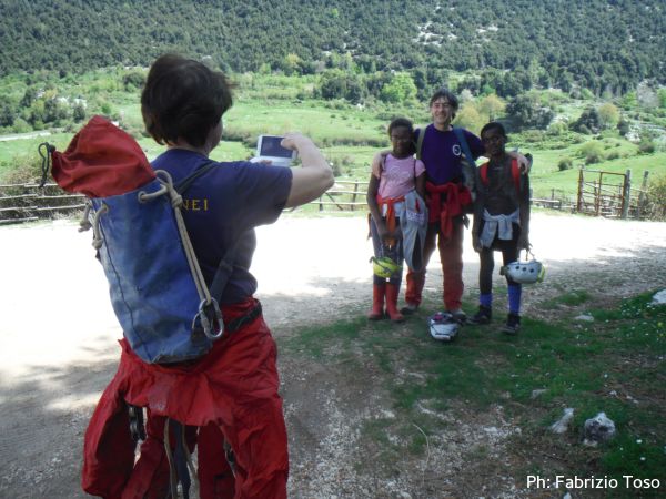 Ecco Gabriele con il fido zaino gonfio della utile corda.