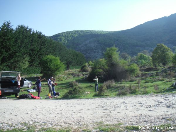 Gabriele, che conosce sempre tutti i movimenti dei gruppi del Lazio, ci comunica che oggi gli amici del gruppo di Guidonia avevano l’intenzione di andare a fare un giro a Pozzo Comune. Decidiamo di aggregarci. Rimontiamo in macchina e raggiungiamo Pian della Faggeta. La piana e’ costellata di gruppi di persone che stanno attrezzandosi per il pic-nic. A fianco strada ci sono moltissime macchine, per fortuna il nostro “solito” posto e’ ancora libero. Appena scesi dalla macchina incontriamo subito Riccardo, a degna rappresentanza degli amici che stiamo cercando.
