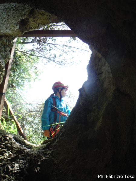 Scendo il pozzetto ancora per primo insieme con Giada assicurata alla corda. Per fortuna ha ancora un peso facilmente gestibile anche a mano.