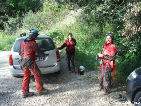 Alle macchine provvediamo al solito, confortevole, rituale del cambio dei vestiti. Lasciare gli indumenti da grotta e’ sempre un momento piacevole.