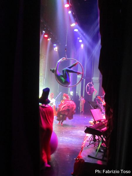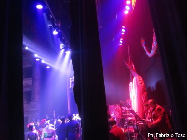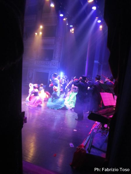 Visto che oramai la’ siamo solo di intralcio ai continui movimenti degli attori ed ai vertiginosi cambi d’abito che si susseguono, ci muoviamo andando a sistemarci al palco riservato alla troupe per gustarci parte dello spettacolo.
