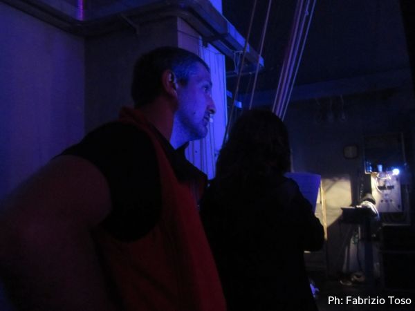 La regista inizia a dare le ultime raccomandazioni e poi manda tutti ai propri posti dopo il “merda,merda,merda” propiziatorio. L’adrenalina si sente crescere come qualcosa di palpabile. Anche chi, come noi ha un ruolo marginale e fuori dal palcoscenico, ne viene preso. Mi ritrovo incredulo a provare una sorta di energetica agitazione che mi porta i battiti ad un ritmo da corsa leggera, ma senza affanno.