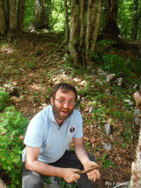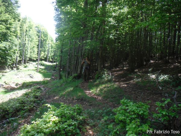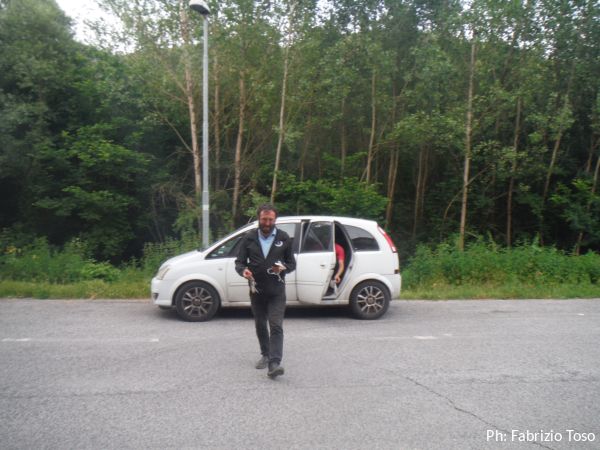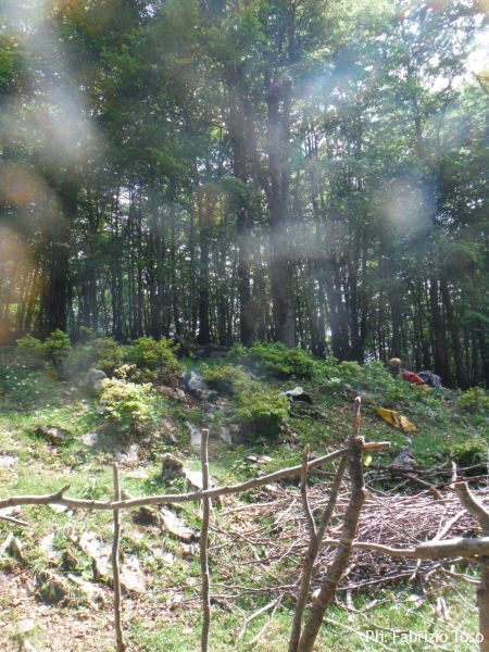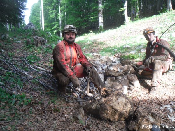 Lavoriamo di buona lena per almeno un’ora. O meglio, lavorano Gabriele e Daniele, Maurizio ed io stiamo a guardare al riparo degli alberi. Provo ad andare a dare una mano, pero’ devo rinunciare perche’ ora ho indossato la tuta speleo e al sole non resisto.