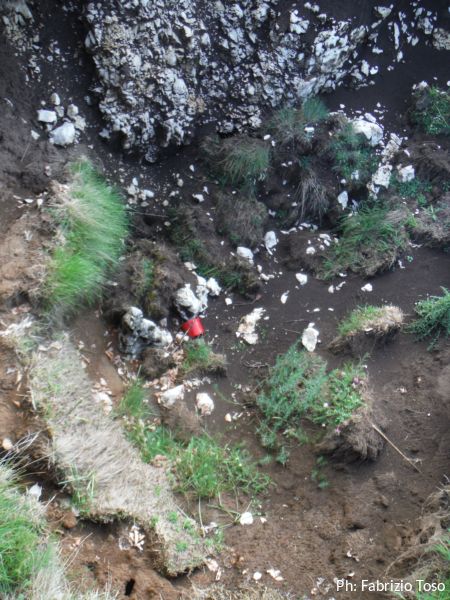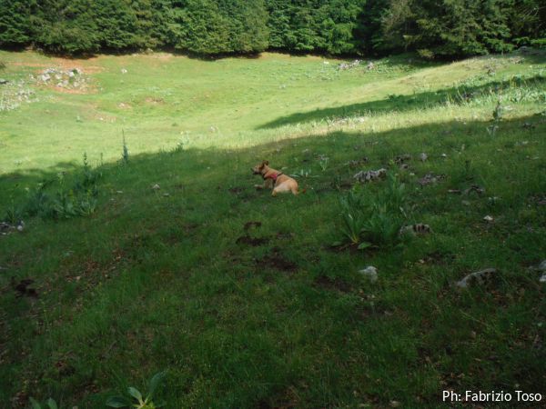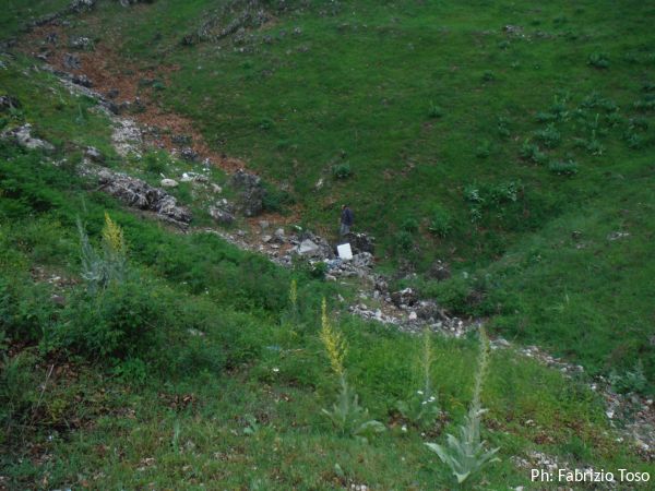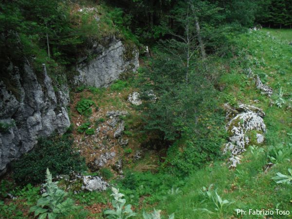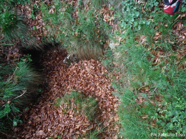 Scendo in una dolina interessante, in fondo c’e’ un buco che va in orizzontale, probabilmente e’ una tana.