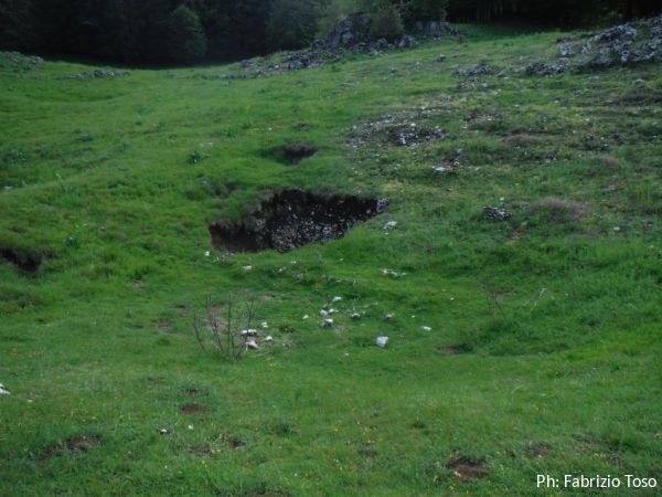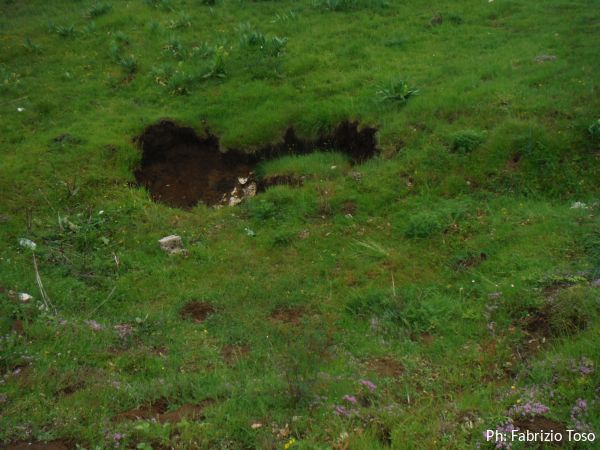 Camminando nel prato si trovano innumerevoli sprofondamenti.