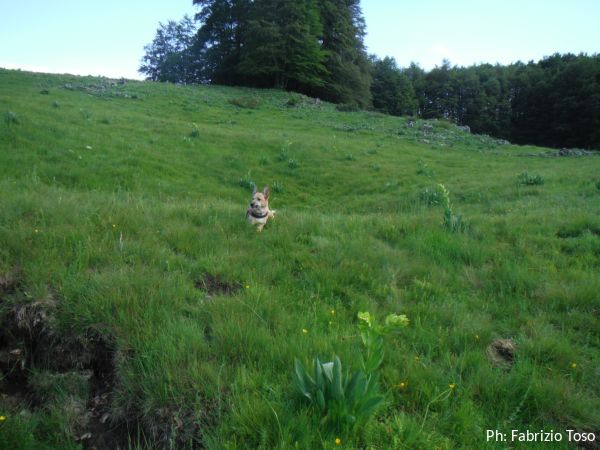 Quasi a conferma della mia impressione circa il buco visitato poco prima, quando me ne allontano vedo scappare una lepre, per fortuna scompare alla vista prima che Luna se ne accorga.