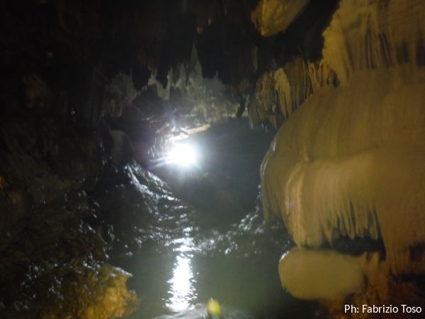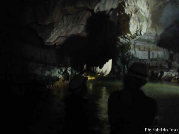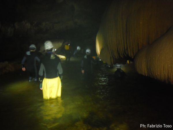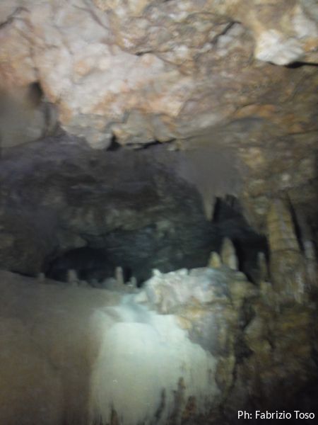 La galleria e’ enorme, alterna tratti di pietra nuda e lavorata dall’acqua a tratti intensamente concrezionati.