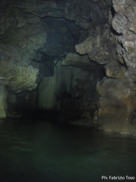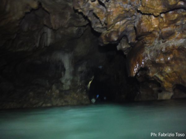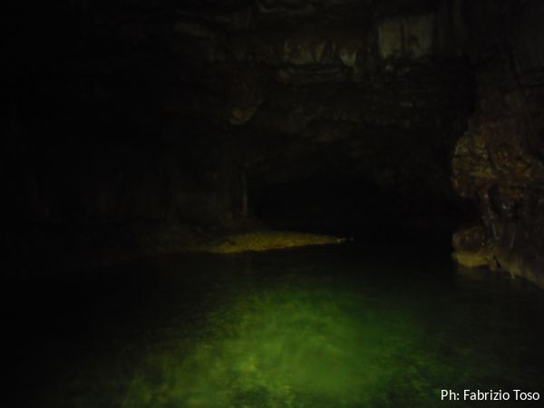 Altra pozza d’acqua limpida e la curva che nasconde il resto della grotta.