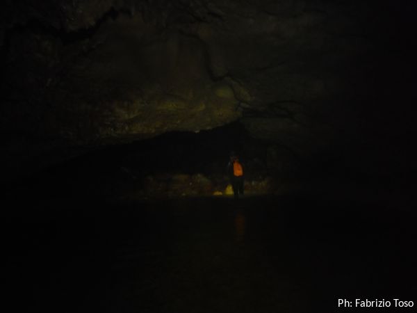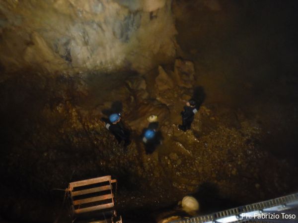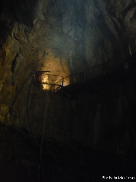 Gia’ si intravede la galleria che prosegue. La parte turistica, e quindi le passerelle di metallo, terminano qua.