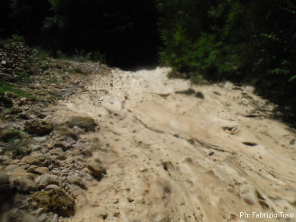 Siamo ancora in parecchi. Arrivo al passaggio sifonante che segna il confine tra Falvaterra e Pastena. E’ una barriera naturale che non permette il passaggio verso Falvaterra a gran parte del pattume che entra a Pastena. L’attraversamento nel mare di bottiglie di plastica, polistirolo ed altre schifezze galleggianti non e’ tra le cose piu’ rimarchevoli della traversata, pero’ si fa. Passo per primo creando un canale quasi pulito per il passaggio degli altri.
