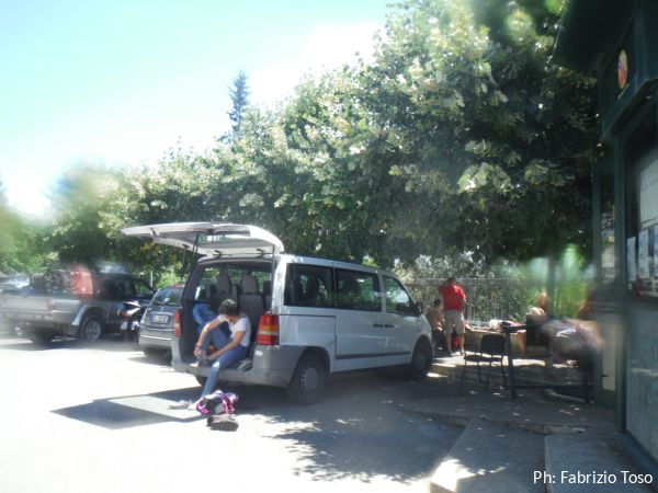 Pochi minuti ed arriva Laura col suo furgone a 8 posti. Iniziamo a preparare il necessario dividendo quel che dobbiamo portare a Falvaterra da quello, il cambio asciutto, che lasceremo a Pastena. Quando siamo pronti manca ancora la macchina di Emilio con i suoi amici. Intanto un piccolo gruppo, tra cui ci sono io, parte con la Panda di Linda mentre Laura ed il resto dei traversandi rimane. Uscendo dal piazzale incrociamo proprio la macchina di Emilio. Tutto ok.