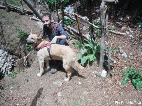 Visto che ora ci sono i rinforzi, Gabriele ed io andiamo a fare un giro. Luna ci accompagna volentieri abbandonando senza rimpianti il suo compagno di giochi. Voglio mostrare a Gabriele un paio dei buchi interessanti che ho visto la volta scorsa.