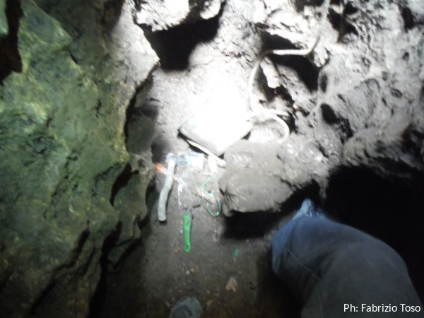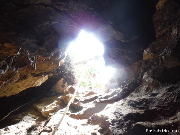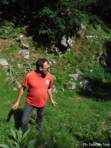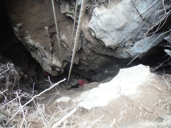 La prima tappa e’ ad una grotta conosciuta di cui Gabriele vuole riprendere il punto.