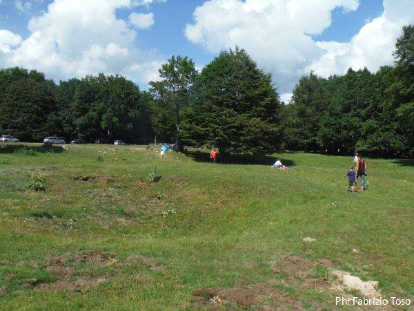 Attraversiamo il piano costellato di doline e di gruppi di persone che fanno pic-nic.