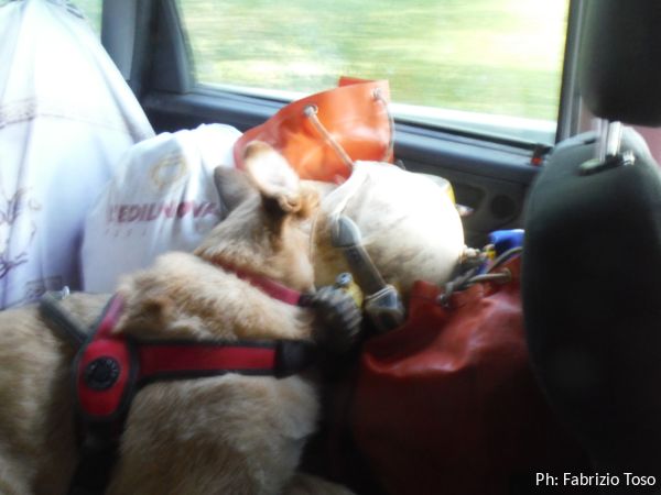 Al ritorno Luna dorme beata tra le nostre attrezzature.