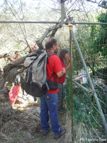 Quando arriva il segnale di via libera dai “3D-isti”, Nerone, Tarcisio ed Erminio smontano un pezzo della recinzione per spostarla ed includere cosi’ il nuovo ingresso. Finito il lavoro col recinto iniziamo a cambiarci, la giornata puo’ dirsi conclusa.