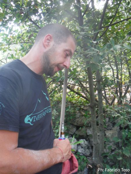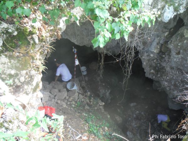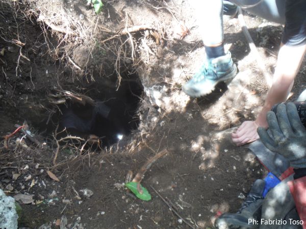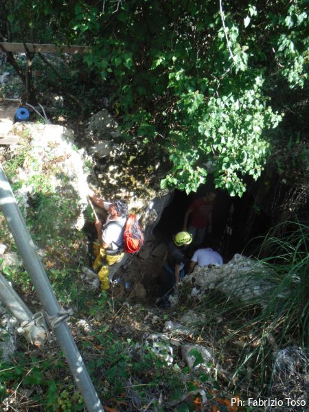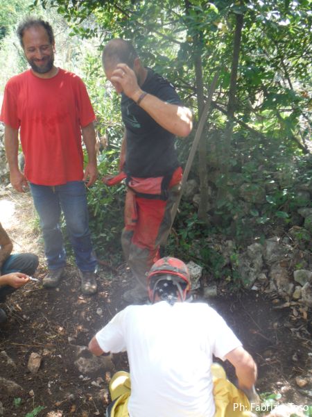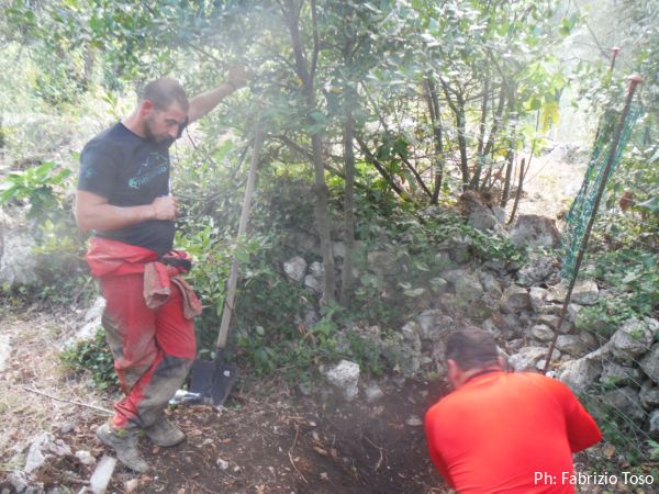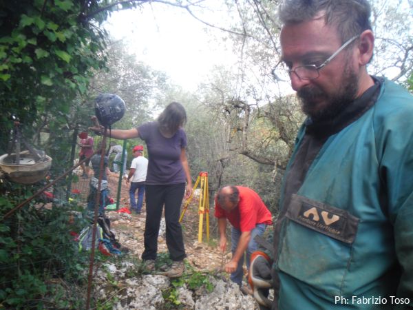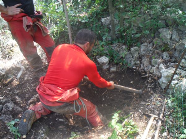 Nerone e Tarcisio, oramai sono esperti di scavi e sono gia’ all’opera. Il programma principale di oggi e’ quello di aprire l’ingresso originario della grotta. Parlo del programma speleo, dal lato archeologico, Luca ha invitato degli esperti che devono fare le riprese per ottenere poi il rilievo 3D della grotta. Entreranno in azione nel pomeriggio.
