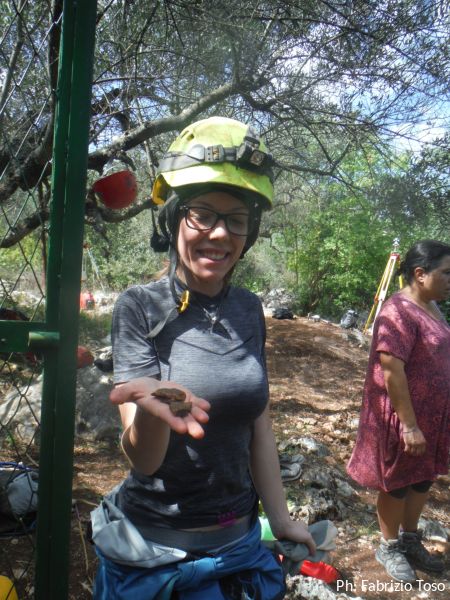 Dopo i saluti, mi cambio e poi scendo per quella che penso sia la mia prima visita da speleo (con tuta, casco e licenza di girare) ad una grotta archeologica.