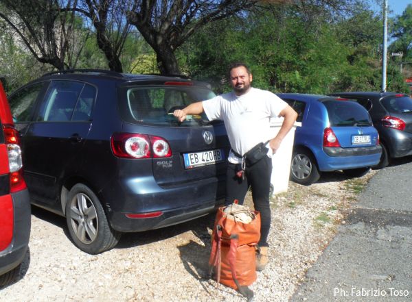 Eccoci arrivati in zona “monnezza”, la discarica all’inizio della galleria. Ci cambiamo qua.