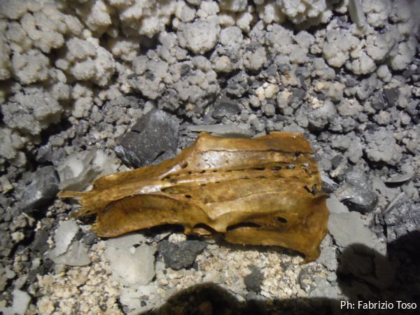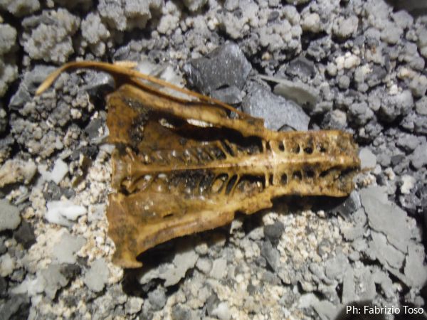 Mentre lo riprendo anche da sotto, si avvicina Giuseppe. Ipotizza che “l’osso” non sia per nulla un cranio…e magari ha pure ragione. Pero’ finche’ qualcuno non lo identifica, lo chiamero’ il “draghetto”