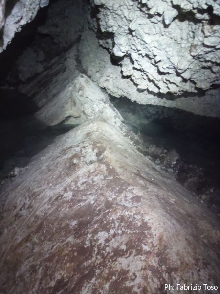 La stalagmite la riconosco, siamo quasi al punto dove parte il meandro.