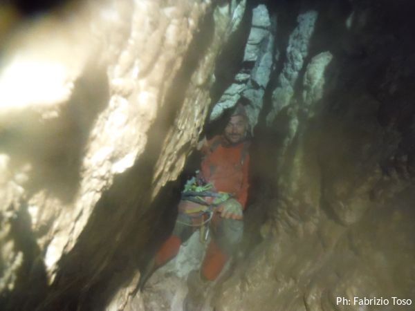 Giu’ per il saltino d’ingresso, poi il traverso, poi la discesa del pozzo, fino alla proboscide dell’elefante.