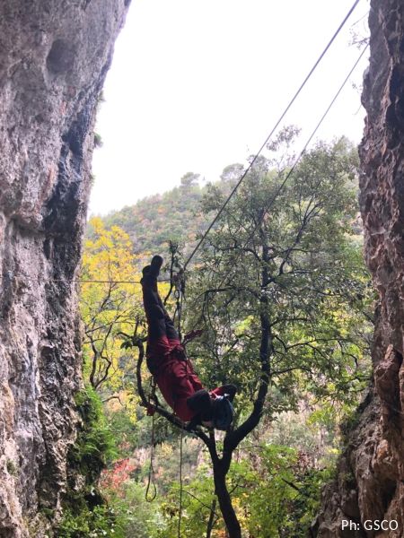 Poi abbiamo fatto i seri, Simone è salito in cattedra spiegando le manovre su come soccorrere un ferito in corda.