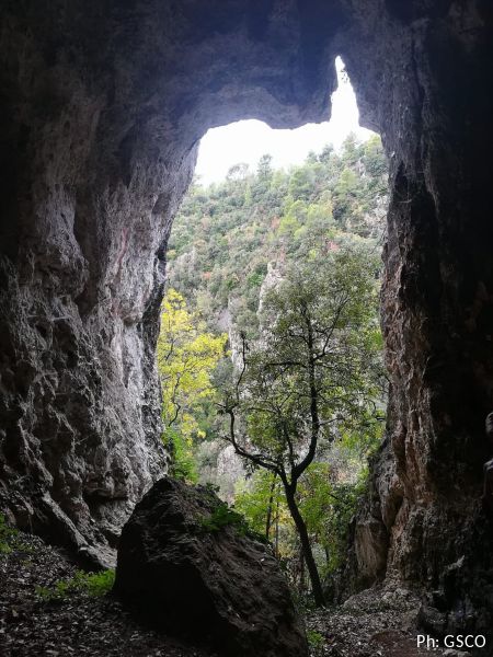 Siamo pronti, ci incamminiamo salendo per il sentiero, che non è molto lungo ed inizialmente è semplice e ma che proprio alla fine scompare e ci si deve arrampicare sulle rocce per poter arrivare a questo grande grottone.