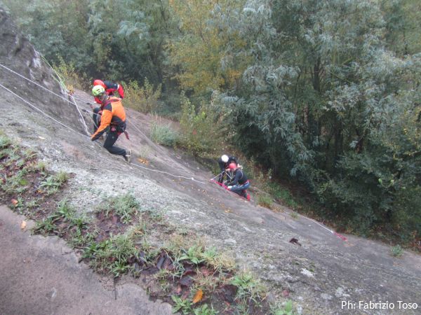 Dimostrazione CNSAS di una tecnica di recupero barella.