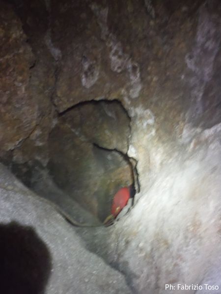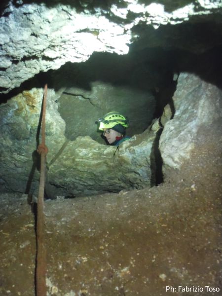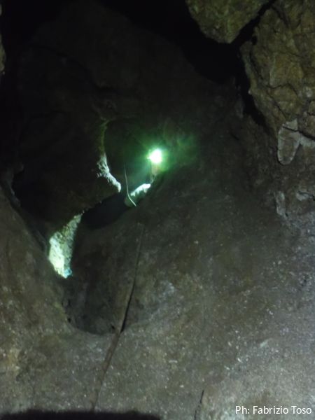 C’e’ da risalire un breve tratto. Fabrizio va avanti, prendiamo il caposaldo e poi salgo anche io. Angelica sale per ultima. L’ambiente non e’ molto largo…”pero’ ci ci sta’, stringendosi un po’” (ho appena citato un pezzo di una canzone di Morandi, ma non vi dico quale!)