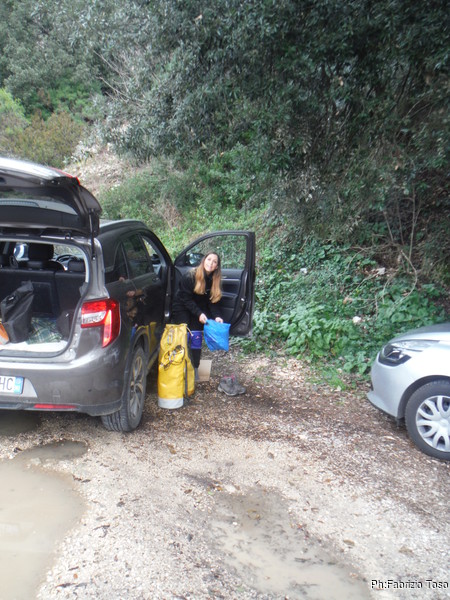 Era un po’ che non tornavo al Pretaro, la grotta di “casa”. L’occasione per andare me l’hanno fornita 2 miei amici, Melina e Marco. Ci vediamo oramai da anni 2 volte a settimana per fare nuoto assieme. Col tempo, e grazie alle chiacchiere post-piscina, hanno scoperto il mio hobby per le grotte. Prima delle feste di Natale, decido di proporre loro la visita ad una grotta. Aderiscono con entusiasmo. Quando allargo la proposta anche ai miei amici speleo di Roma e di Orvieto, Giuseppe se ne dichiara particolarmente contento, sono anni che sente parlare della grotta del Pretaro senza mai essere riuscito a visitarla. Decisa la data, decisa la grotta, organizzo quel che serve con l’aiuto dei miei amici spelei…ed oggi, eccoci qua.