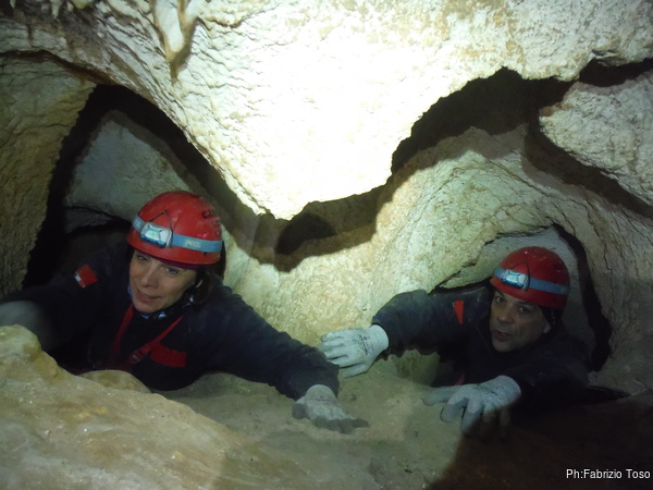 Uscita di coppia dal cunicolo. Gia’ si inizia a sentire l’aria fredda che viene da fuori.