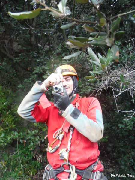 Aspettando che Giuseppe sistemi la corda, riprendo a trafficare con la fotocamera. Spero che magari la scheda e’ rovinata solo nella parte iniziale. Provo a cancellare le foto a meta’. In effetti cosi’ riesco. Ora non devo piu’ fare economia di foto, posso sfogarmi. Tanto per cominciare, ecco Marco dopo la discesa.