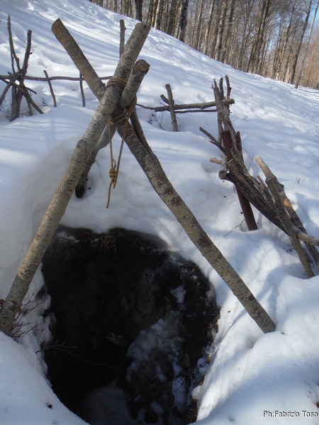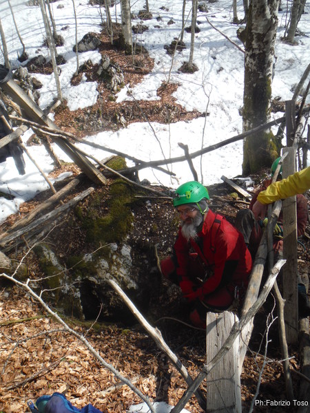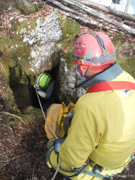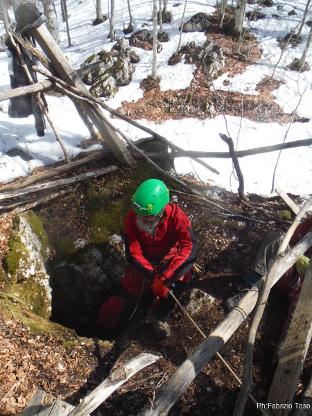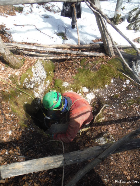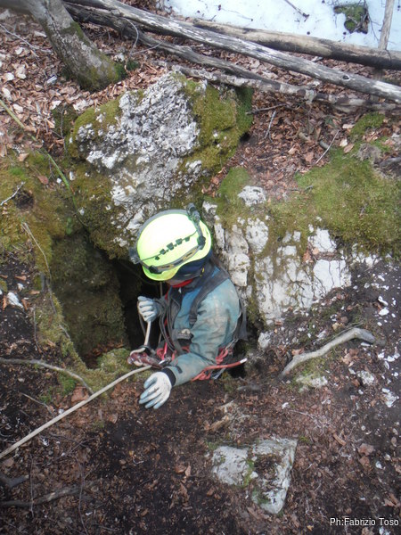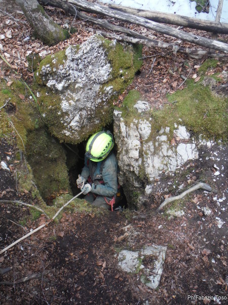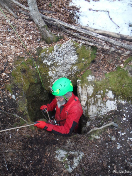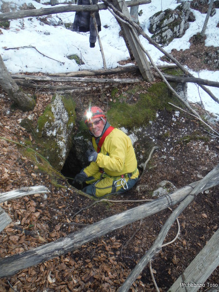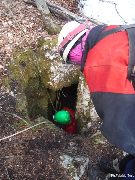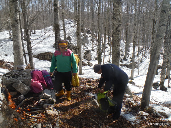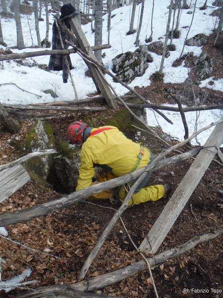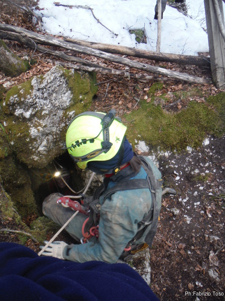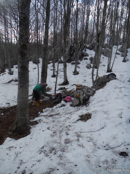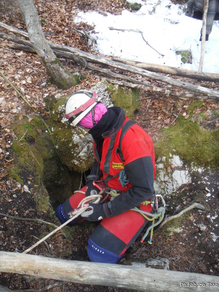 Come deciso, Fabrizio e Valerio entrano per primi, vogliono sistemare l’armo prima che entri il resto del gruppo. Gianluca e Nerone, come me, rimarranno fuori e prepareranno qualcosa di caldo per il ritorno dei nostri esploratori infreddoliti.