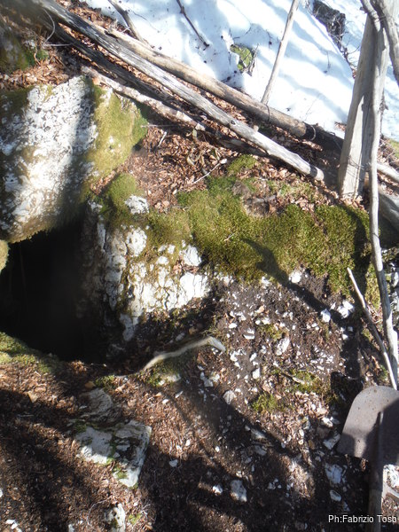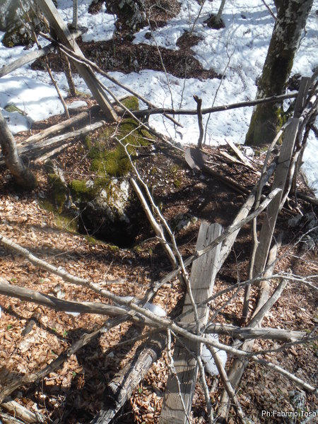 Saluto grotta Vale dandogli appuntamento a dopo il disgelo. riprendo la macchina e riparto…per fermarmi dalla parte opposta della strada. C’e’ una dolina con uno sprofondamento interessante, gli faccio una foto per ricordarmi di passare a salutare anche lui quando sara’ piu’ caldo.