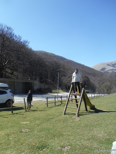 Andiamo in Val di Ranco. Purtroppo Tobia e’ ancora chiuso, aprira’ in aprile, quindi prendiamo posto in un prato vicino con tavoli da pic-nic e giochi vari.