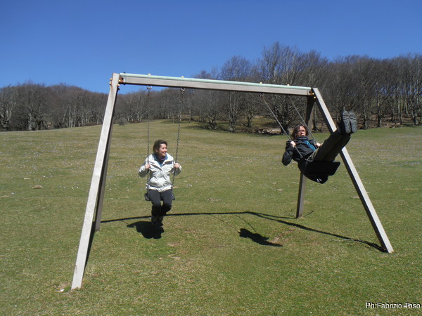 Qua il sole prevale sul vento, anche se quest’ultimo c’e’ sempre, e’ ottimo per stemperare il sole. Per prima cosa diamo allegramente fondo alle cibarie, poi le ragazze si fanno un giro in altalena. Qualche anno fa, forse anche piu’ di qualche, avrei fatto a gara con loro per andare per primo in altalena. Oggi mi limito a far loro le foto mentre si divertono. Sara’ un segno della vecchiaia incipiente?!?