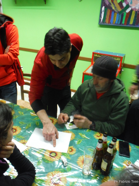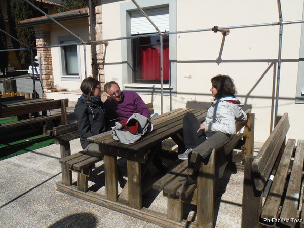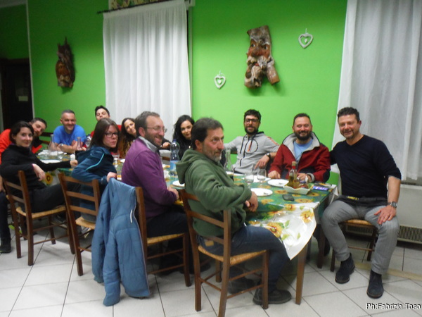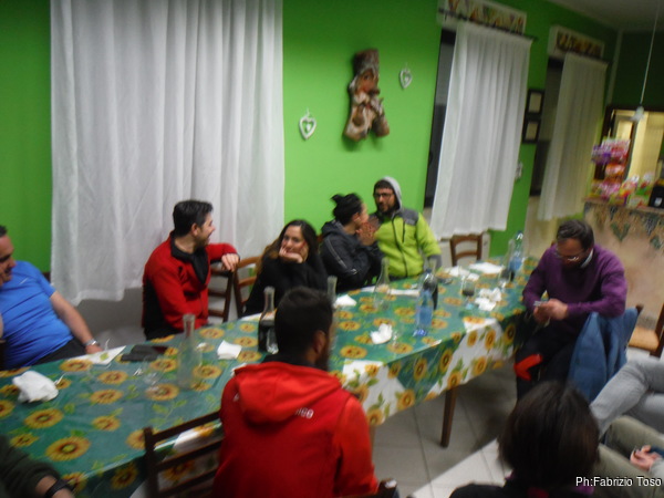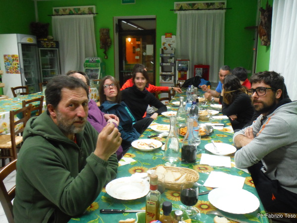Quando siamo ben satolli e ben giocati, approfitto della consueta spossatezza post-prandiale per tediare di nuovo i miei amici con gli aneddoti su Tobia, PantaSpeleo, PhantaSpeleo e tutto quel che ricordo su questi luoghi. Mi convinco a smettere quando li vedo “scapocciare”, col rischio di sbattere la testa contro il piano di legno del nostro tavolo. Riprendiamo la macchina per scendere all’Ostello del Volo. Purtroppo Alessandro, il simpatico ragazzo che gestisce l’ostello, e’ ancora via. Lo aspettiamo per un poco, poi decidiamo di fare 4 passi.