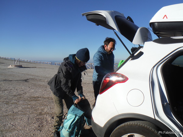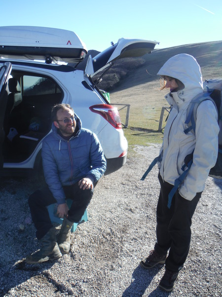 Al parcheggio c’e’ ancora il vento di ieri, e’ rimasto ad aspettarci. Ci cambiamo svelti prima di ghiacciare.