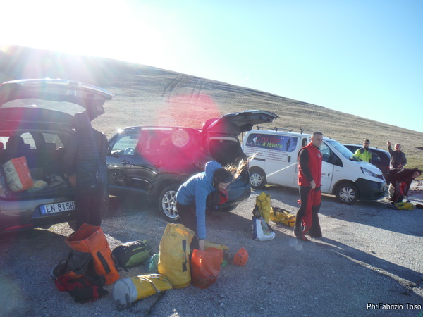 Come dicevo, siamo in 4, Angelica, Valentina, Gabriele ed io. La mattina ci vediamo sotto casa mia. Per prima cosa, prima di partire, consegniamo a Valentina il regalo per il suo compleanno, tutte robe che possono piacere solo a degli speleo. Dopo i festeggiamenti, si parte senza ulteriori indugi.