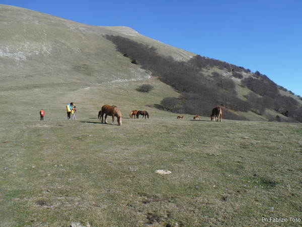 Chiara scalpita per partire, vuole andare a salutare i cavalli che pascolano nei pressi del sentiero che dobbiamo prendere.