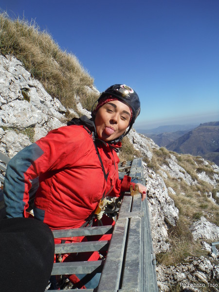Visto che sono gia’ sulla seconda corda, ne approfitto per scendere con Valentina. Guardo sotto, niente da dire, e’ proprio un bel baratro!