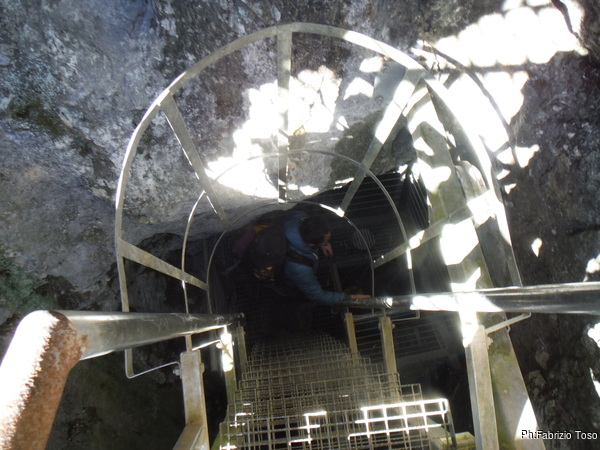 Iniziamo la discesa della scala. Di certo e’ comoda, ma lo zaino sulle spalle si incastra da tutte le parti costringendomi ad una posizione china molto scomoda.