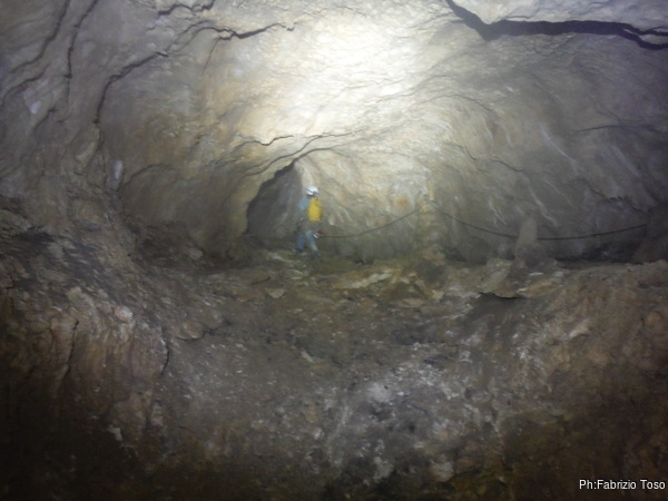 Sgranocchio anche io qualche pezzo di cioccolata. Finito il frugale pasto, riprendiamo il cammino. C’e’ ancora un tratto di galleria per arrivare al Baratro.