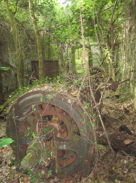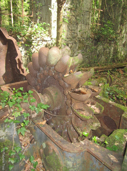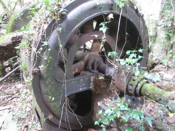 All’interno ci sono i resti di macchinari, anche se ricoperti di ruggine e vegetazione, fanno ancora la loro figura.