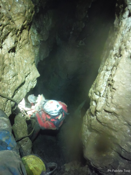 Entriamo. Parte per primo Matteo e poi arrivo io a tirargli un poco di terra.